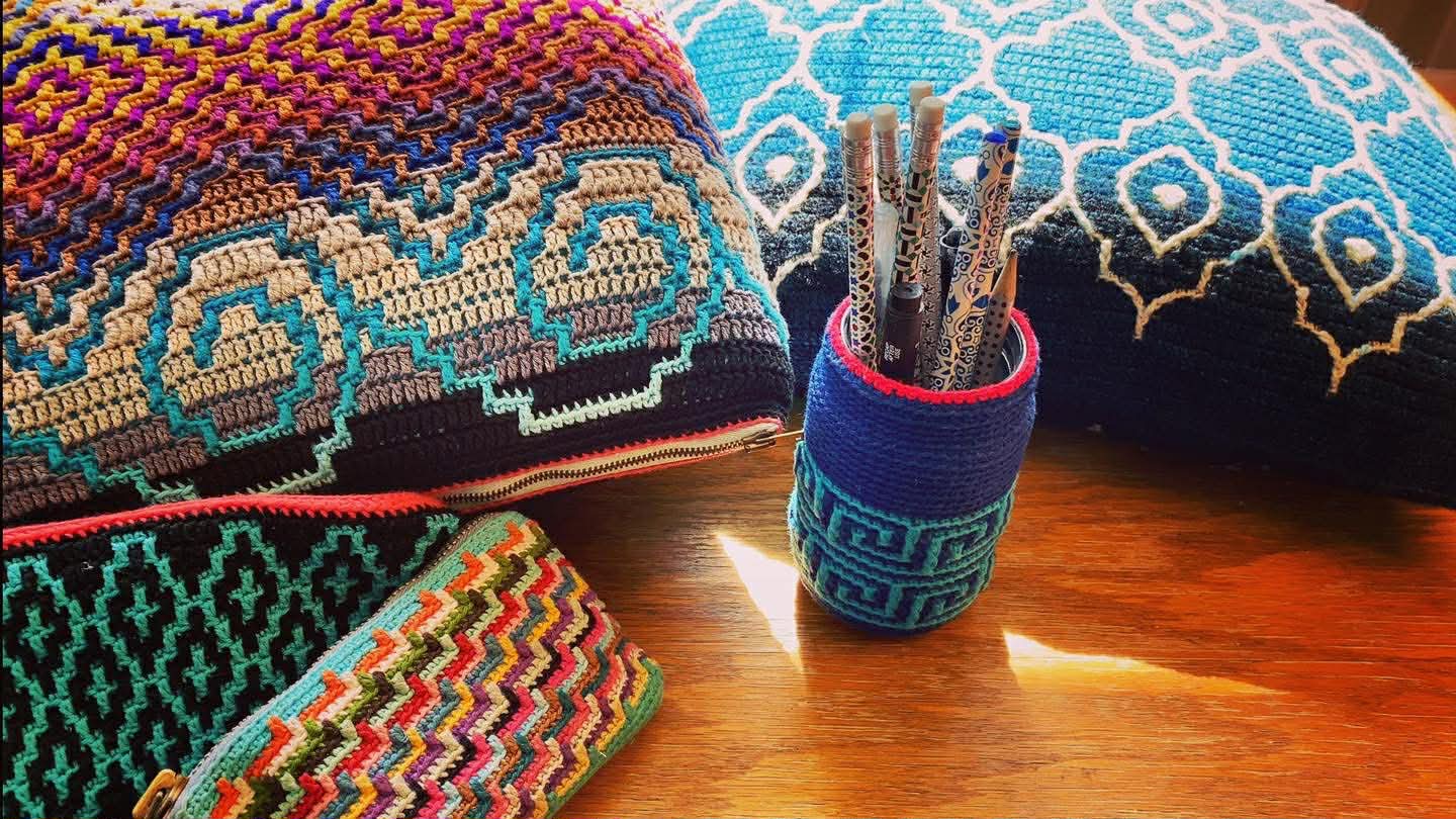 Langar þig til að læra að hekla buddur með mósaíkmunstri?
